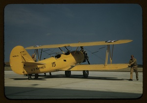 Marine lieutenant by the power towing plane for the gliders at Parris Island, S.C.