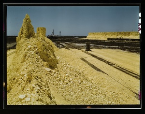 Railroad cars loaded with sulphur, Freeport Sulphur Co., Hoskins Mound, Texas