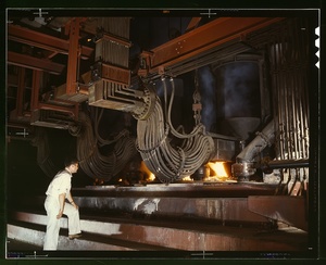Electric phosphate smelting furnace used in the making of elemental phosphorus in a TVA chemical plant in the Muscle Shoals area, Alabama