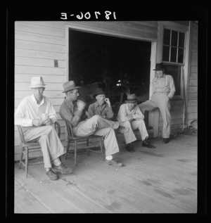 South Carolina. Livery stable gang talking politics in the country of Senator "Cotton Ed" Smith