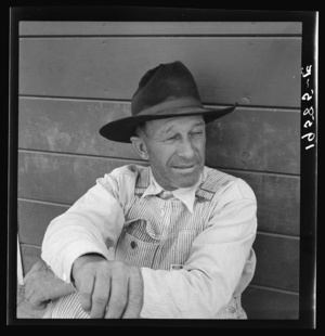 Between Tulare and Fresno on U.S. 99. Farmer from Independence, Kansas, on the road at cotton chopping time. He and his family have been in California for six months