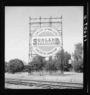 Near Kingsburg. Small independent gas stations litter the highway. California