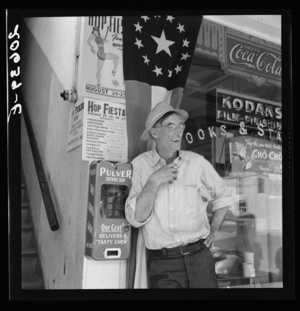 Oregon. Medford. Half-grown farm boy on main drugstore corner in town