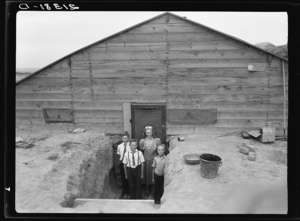 The Free children in doorway of their home in Sunday clothes. Dead Ox Flat, Malheur County, Oregon