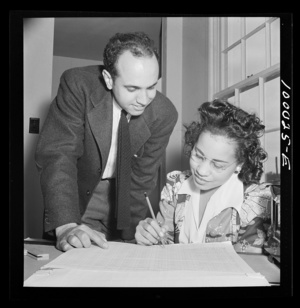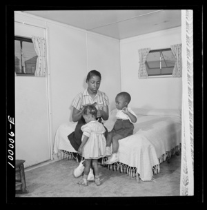 The photographs in the Farm Security Administration - Office of War Information Photograph Collection form an extensive pictorial record of American life between 1935 and 1944. Photographer Marjory Collins was hired by the Office of War Information to photograph American life and support of the war effort. Across some 50 assignments, Ms. Collins captured iconic images of workers, families, and children all along the eastern part of the U.S. Her photos span January 1942 - June 1943 In 1944 Collins worked freelance for a construction company in Alaska before travelling to Africa and Europe on government and commercial assignments. Thereafter she worked mainly as an editor and a writer covering civil rights, the Vietnam War and women's movements. In the 1960s she edited American Journal of Public Health.[1] In the 1980s she moved to San Francisco where she obtained an M.A. in American Studies at Antioch College West. She died in 1985 at the age of 73.[1]
