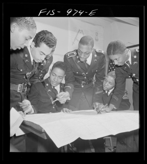 Washington, D.C. Members of the military unit at the Armstrong Technical High School studying a map
