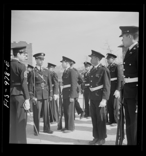 Washington, D.C. Members of the military unit at the Armstrong Technical High School reporting to a regular army officer