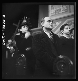 New York, New York. Italian-Americans leaving the church of Our Lady of Pompeii at Bleeker and Carmine Streets, on New Year's Day