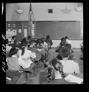 Washington, D.C. Class listening to a radio broadcast about South America, sponsored by a local station