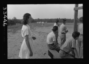 Keysville, Virginia. Randolph Henry High School. Playing baseball during gym period. Girl replaced man teacher who was drafted in the army