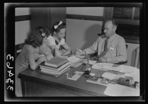 Keysville, Virginia. Randolph Henry High School. Mr. J. M. Garber, principal, working with two students on their next semester's schedules