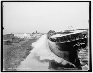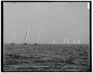 Start of the sloops, 46-footers, Aug. 10, 1900, N.Y.Y.C. cruise