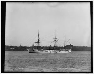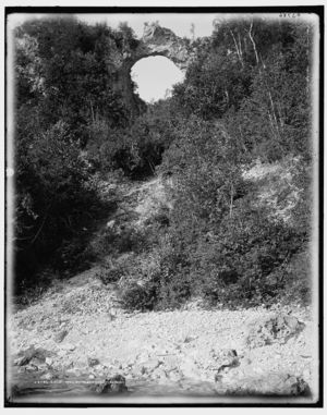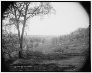 Old Fort Mackinac from pasture field, Macinac sic Island, Mich.