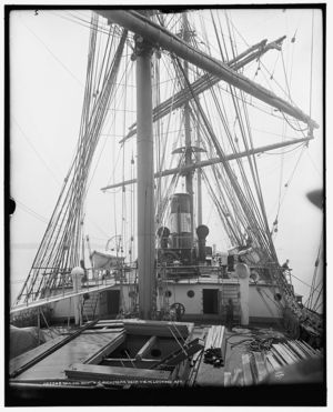 Sailing ship R.C. Rickmers, deck view, looking aft