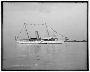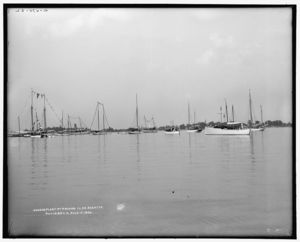 Fleet at anchor, I.L.Y.A. regatta, Put-In-Bay, Ohio, July 17, 1906