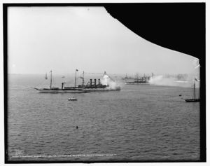 President Roosevelt on the Mayflower reviewing fleet, Hampton Roads, Va.