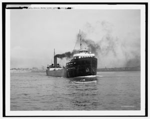 S.S. M.W. i.e. Howard M. Hanna on reef (near Pt. Austin light, Lake Huron)