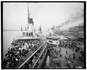 Excursion steamers at wharves, Detroit