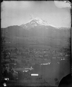 Popocatapetl i.e. Popocatepetl and Ixtacchihuatl i.e. Iztaccihuatl from Amecameca, Mexico