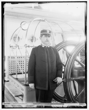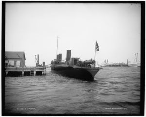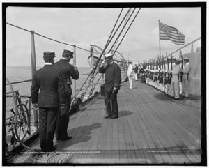 U.S.S. New York, Admiral Farquhar leaving the ship, 1899