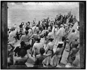 U.S.S. Oregon, cheering the hauling down of the Colon's colors, Battle of Santiago
