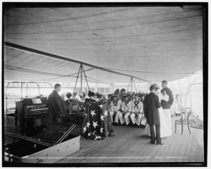 U.S.S. Texas, presentation of cross and badge to Ensign Gherardi by the King's daughters, Aug. 8, 1897