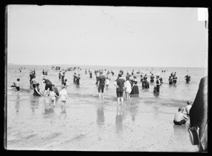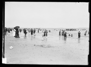 Photographer taking picture of group with donkey at crowded beach, Atlantic City, N.J.