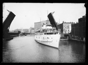 Steamboat United States passing State Street bridge, Chicago River, Chicago, Ill.
