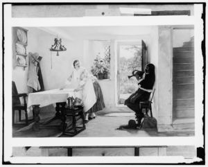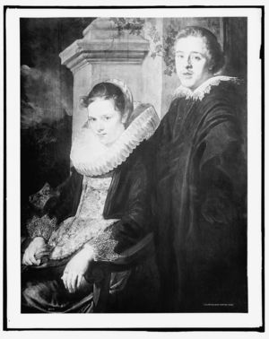 Young man and woman, three-quarter length portrait