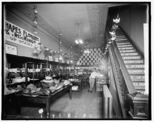 Millinery store interior, possibly Detroit, Michigan
