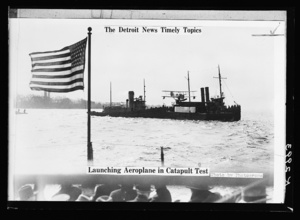 The Detroit news timely topics. Launching aeroplane in catapult test