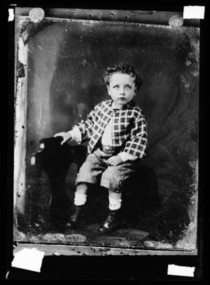 Seated boy in checkered jacket