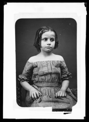 Girl with hair in ringlets and off-the-shoulder dress