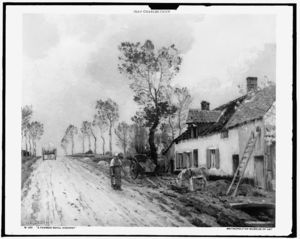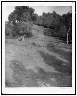 Oxen fording a stream