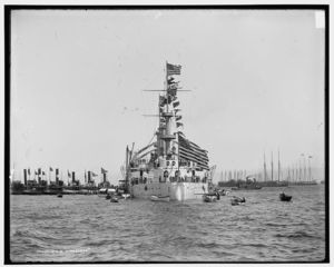 Mardi Gras, New Orleans, approach of fleet with Rex