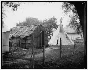 Hut and tepee, probably St. Clair Flats, Mich.