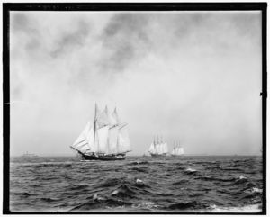 Three three-masted ships