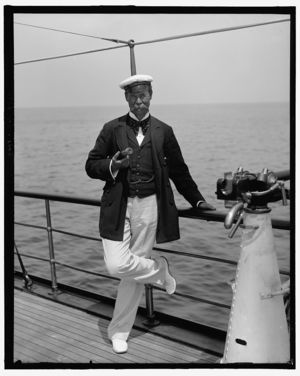 Man posed with nautical equipment on ship deck