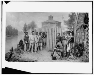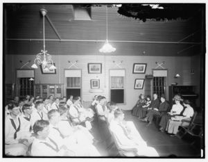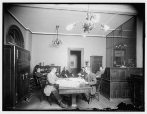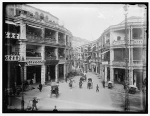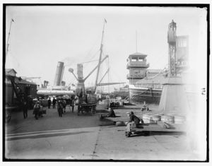 Soldiers and newsboy in plaza, probably Havana, Cuba, or possibly Mexico
