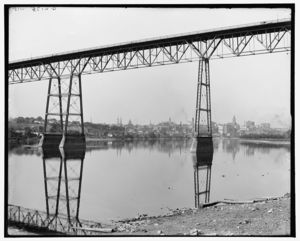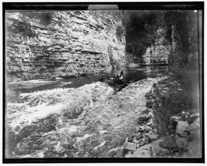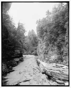 R.R. bridge and Rainbow Falls, Ausable Chasm, N.Y.