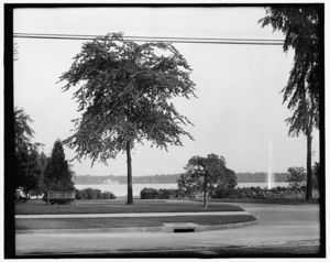 Lake and pavilion, Clark Park, Detroit, Mich.