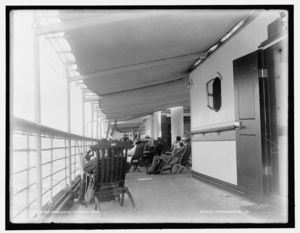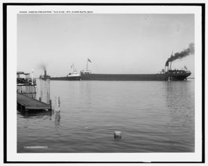 Passing freighters, Old Club, Ste. Claire sic Flats, Mich.