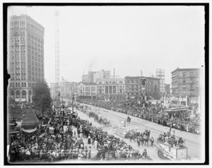 Floats in civic & industrial parade, Detroit bi-centenary celebration