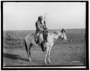Rattlesnake, an Assinaboine, on guard on outskirts of camp