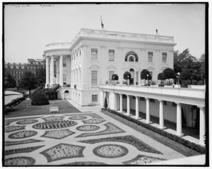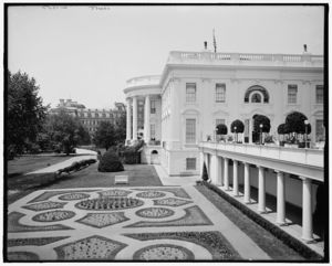 White House, south entrance & flower beds, Washington, D.C.