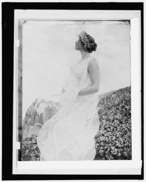 Marguerite wearing hat with hand on chin