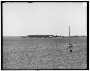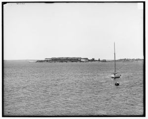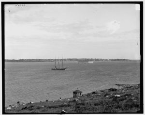 Fort Gorges and Peak Island from Eastern Promenade, Portland, Me.