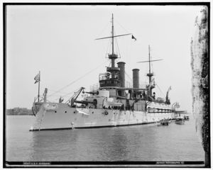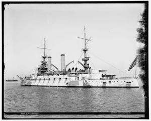 U.S.S. Iowa, damage from Spanish fire in Battle of Santiago