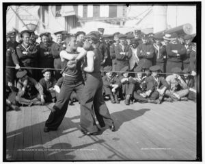 U.S.S. New York, 3 legged race, anniversary of Santiago