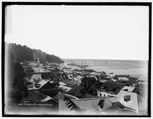 Cathedral and waterfront of St. Pierre, Martinique, W.I.